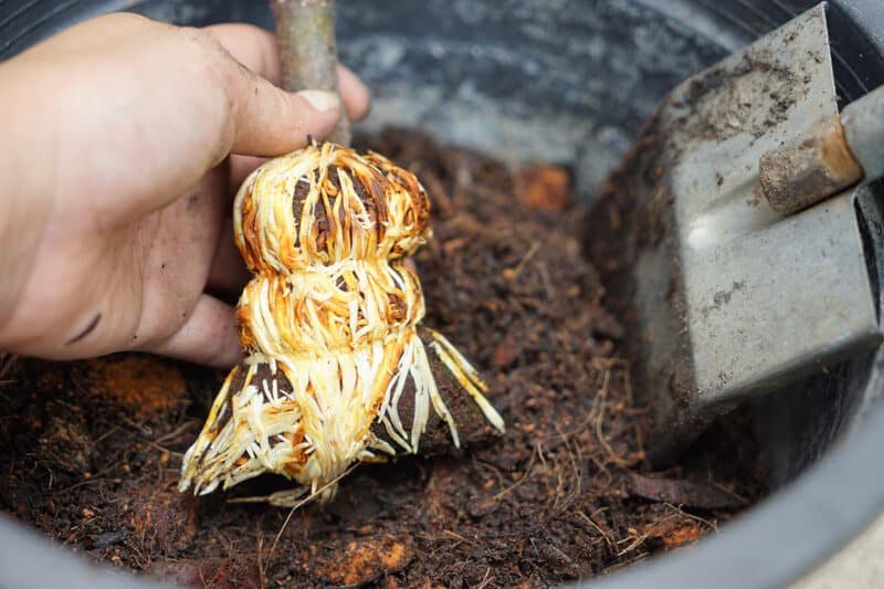 - Cut Below the Root Ball: Use a sharp knife to cut the branch just below the newly formed roots.