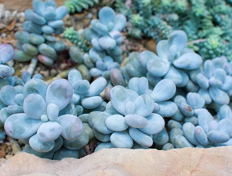 Moonstones pair well with cacti, echeverias, jade plants, and string succulents.