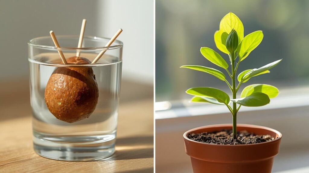 Seeds can be planted directly into soil instead of water. Use a deep pot with well-draining soil mix. Plant flat end down, leaving the top exposed. Water lightly to keep soil moist, not soggy. Place pot in bright, indirect sunlight. Soil germination takes slightly longer but reduces transplant shock. Monitor for mold or fungal growth. Avoid overwatering to prevent rot. Soil method is practical for home gardeners. Both methods yield strong seedlings.